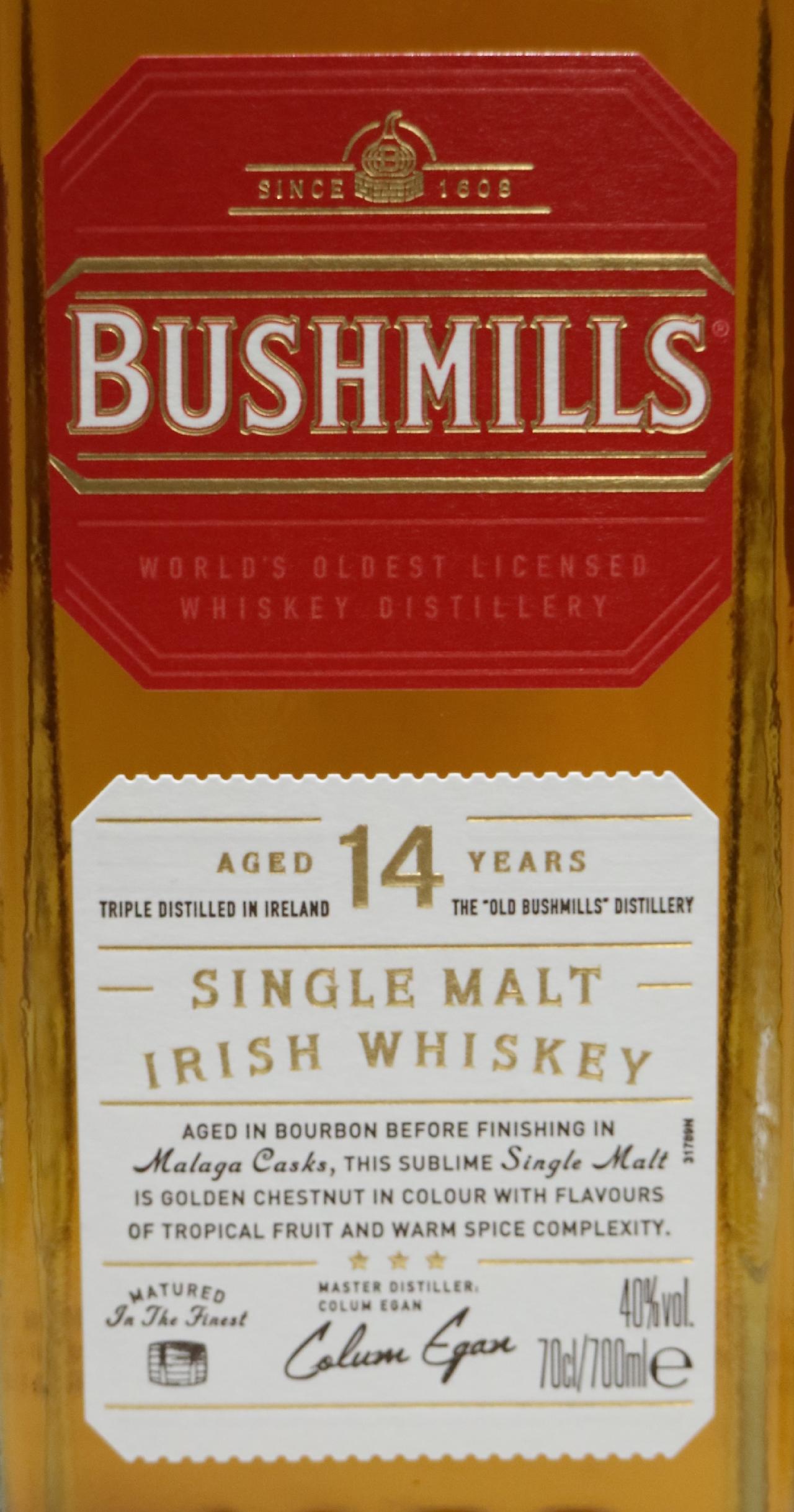 ブッシュミルズ蒸溜所が製造する14年熟成のシングルモルトウイスキーです。 バーボン樽で熟成された後、12ヶ月間マラガワインの樽でフィニッシュ(後熟)されています。