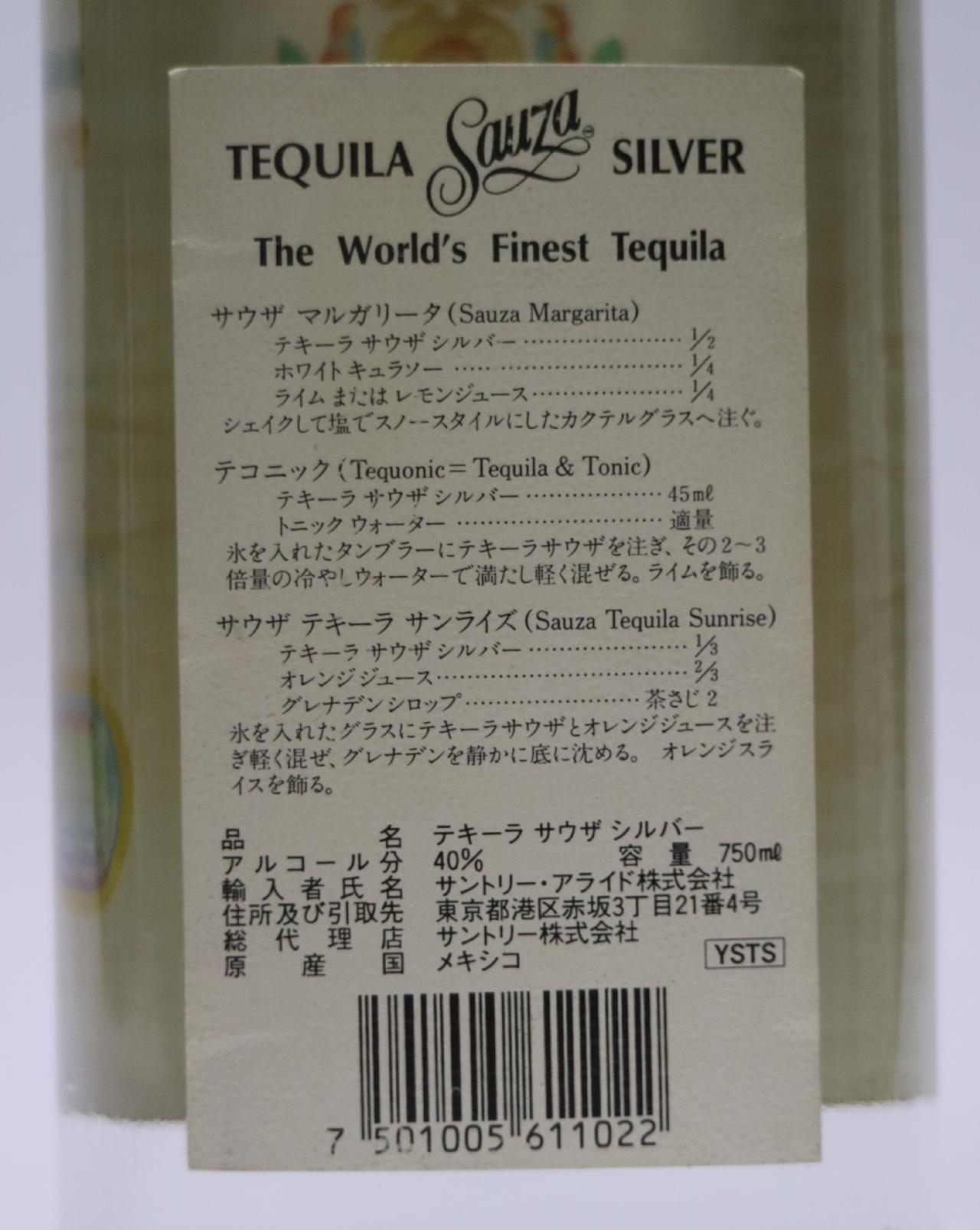 HOME > テキーラ > [古酒] サウザ テキーラ シルバー 正規品 40度 750mlの詳細